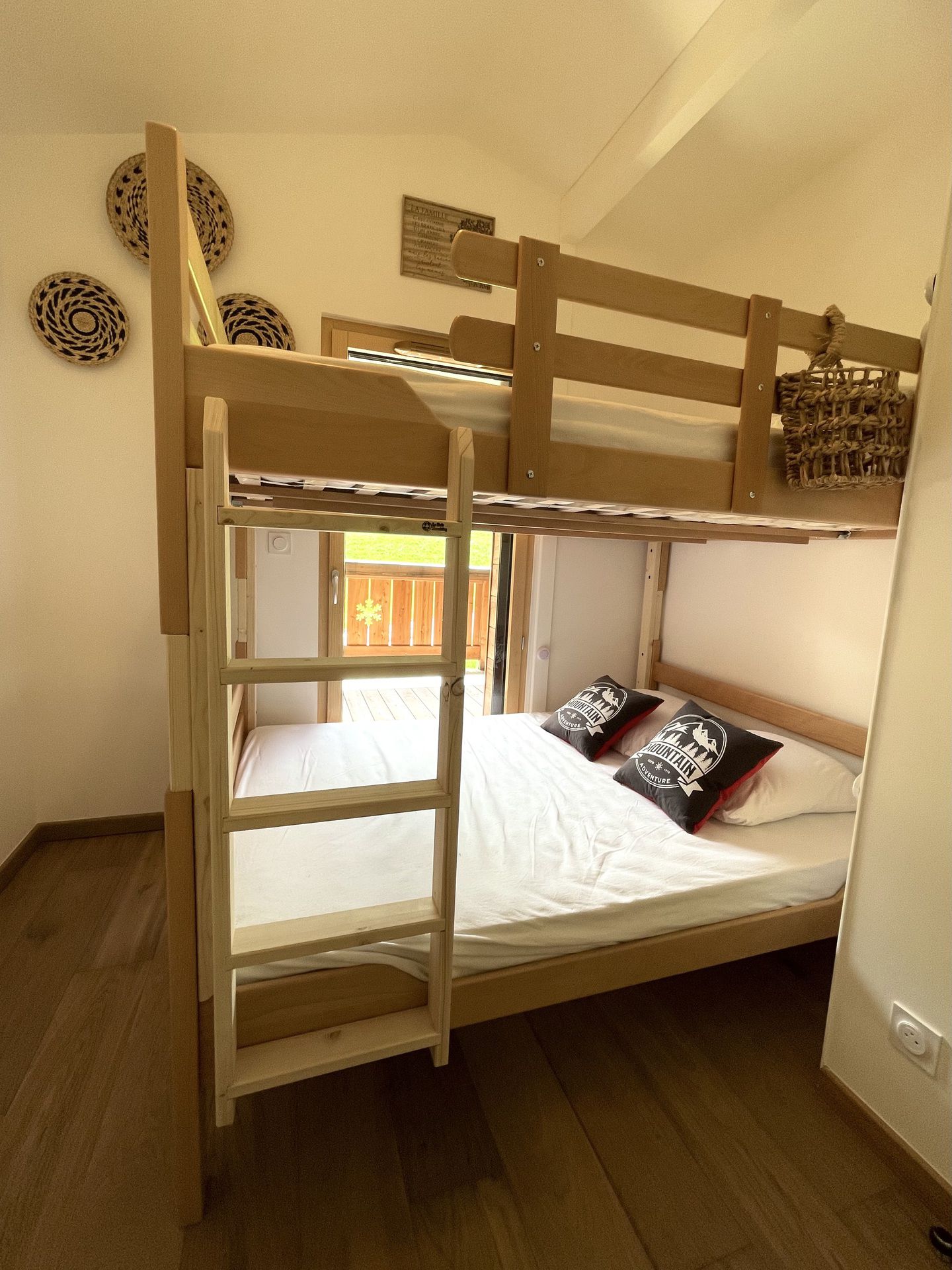 - Couchages : une chambre avec un lit double superpose (2*140), une chambre double (lit de 140) avec television ecran plat. Literie equipee de couettes.
