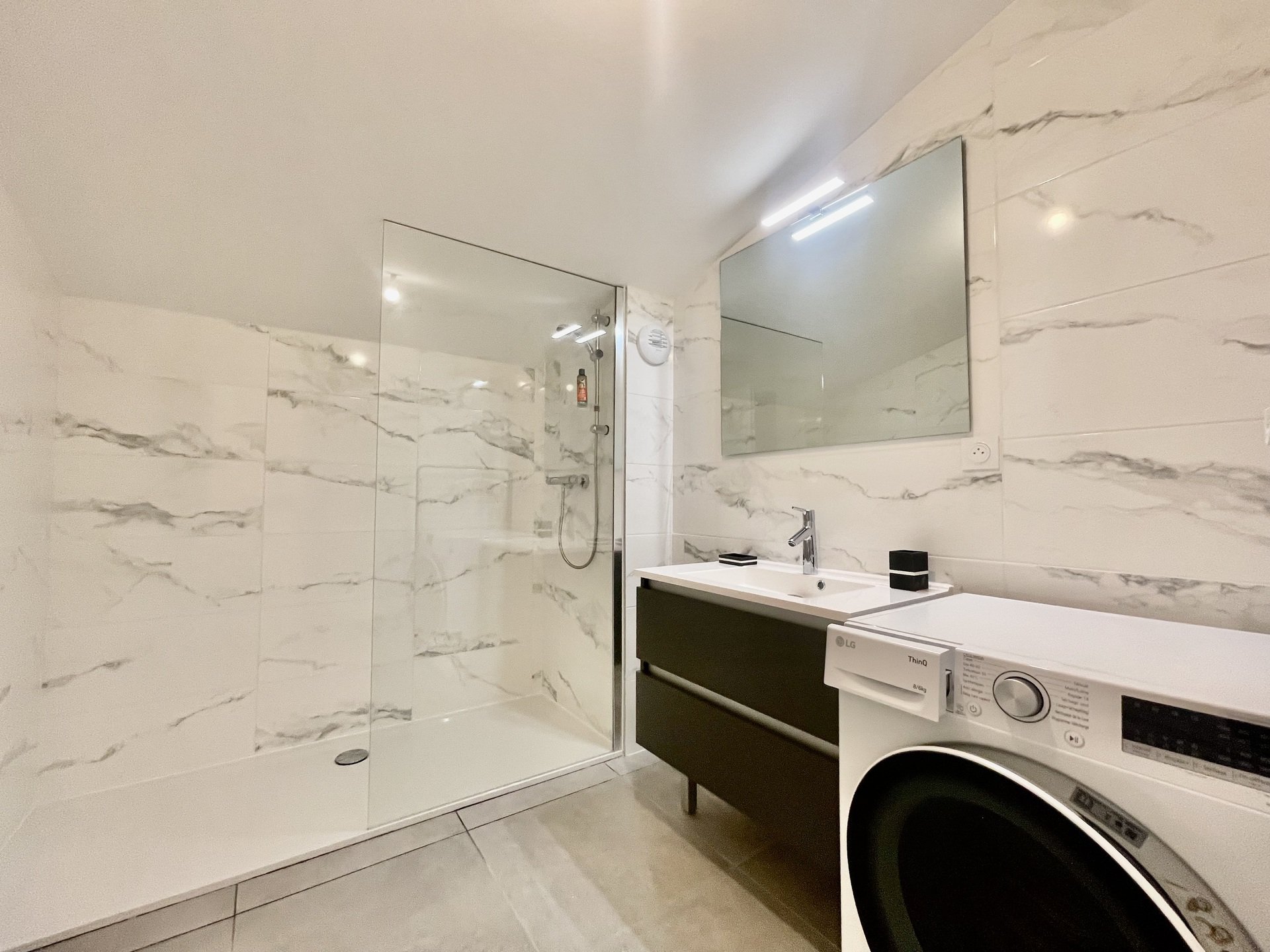 - Cuisine ouverte sur sejour : refrigerateur, four, plaque electrique, lave-vaisselle, micro-ondes et hotte.