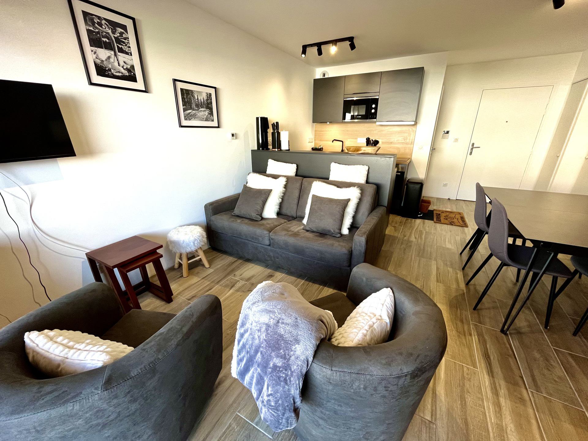 NOTRE AVIS : Vous serez seduit par cet appartement neuf et tres fonctionnel avec ces nombreux rangements. Vous apprecierez la proximite des pistes et sa vue. Ideal pour des sejours en ete et en hiver.