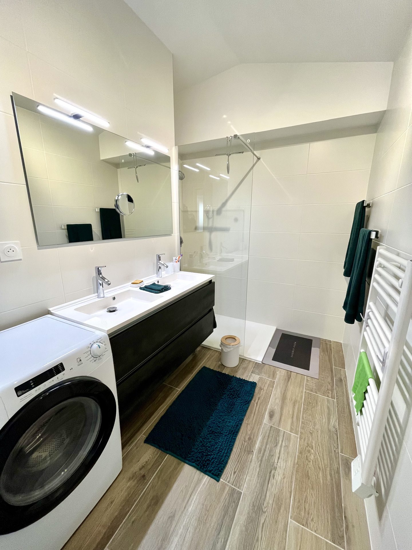 - Une salle d'eau avec double vasque et lave-linge