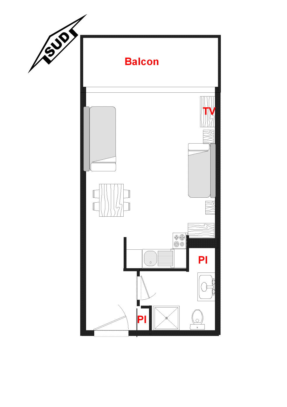 NOTRE AVIS : Studio très lumineux, avec une grande baie vitrée. Belle décoration de style montagne.