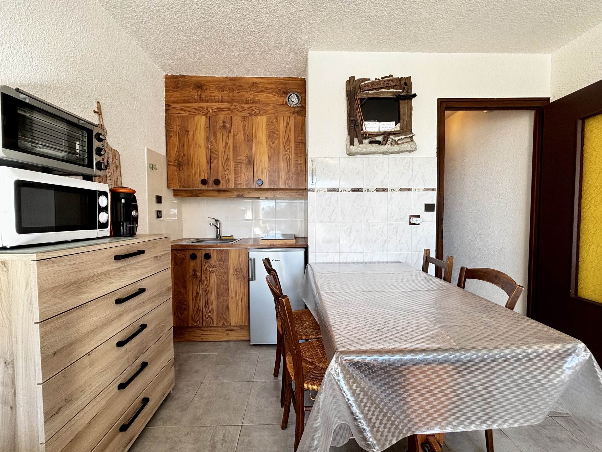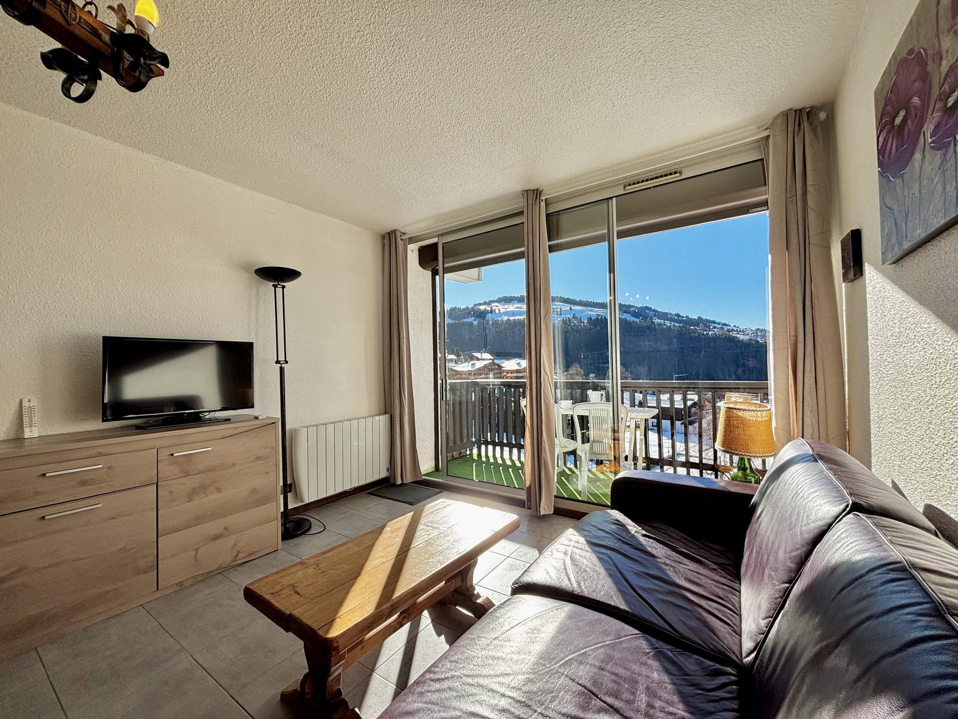 Ce studio de 25,04 m2, situe au 6e etage, beneficie d'une vue imprenable sur le village, la piscine et le Mont Charvin. Son balcon expose plein Sud permet de profiter du soleil tout au long de la journee. Concu pour accueillir jusqu'a quatre personnes, il constitue un hebergement confortableet agreable.