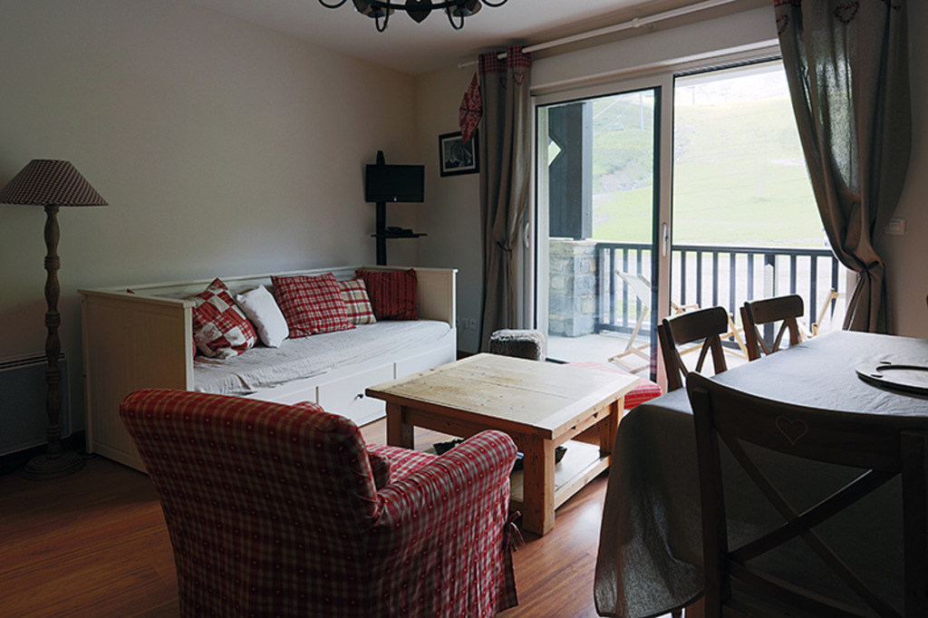 Appartement (niveau 1, env.50m2), avec balcon et vue sur les pistes situé dans la résidence Le Sérias au pied des pistes.