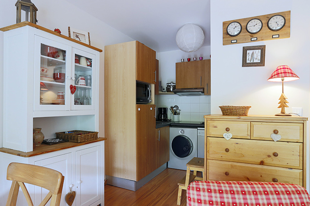 Kitchenette équipée de 4 plaques vitrocéramiques, d'un four, d'un micro ondes, d'un réfrigérateur,d'un lave vaisselle et d'un lave linge.
