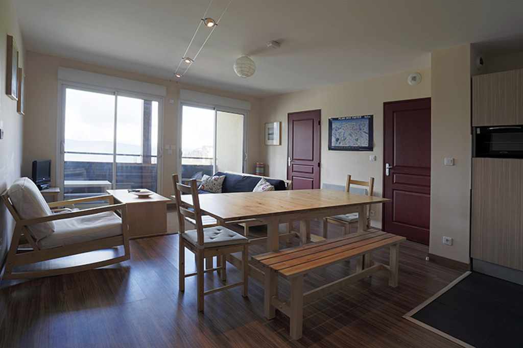 Appartement (niveau 1)(env.63m2), avec balcon et vue sur la vallee situe dans la residence Le Serias au pied des pistes.