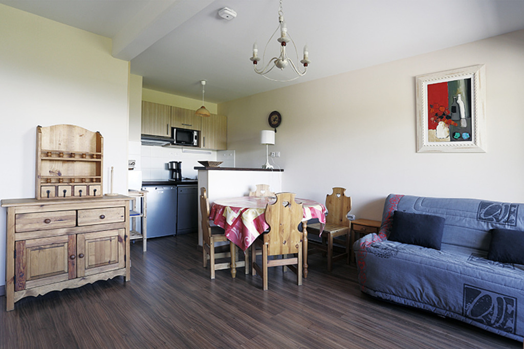 Appartement (niveau R+2)(env.40m2), avec vue sur la vallee et balcon, situe dans la residence Le Serias au pied des pistes.