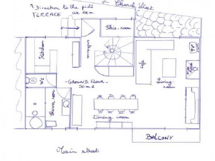 Chalet à louer, à proximité des pistes (moins de 50m) et à proximité immédiate des commerces, idéal pour 6 à 9 personnes, superficie de100m2, sur 2 étages.