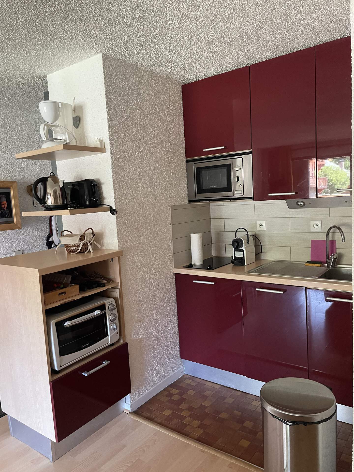 - Coin cuisine : mini-four, four micro-ondes, lave-vaisselle, refrigerateur, plaque vitroceramique.