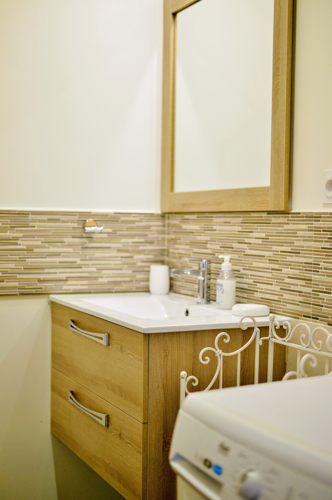 Salle d'eau 1 : lavabo, douche et lave-linge.