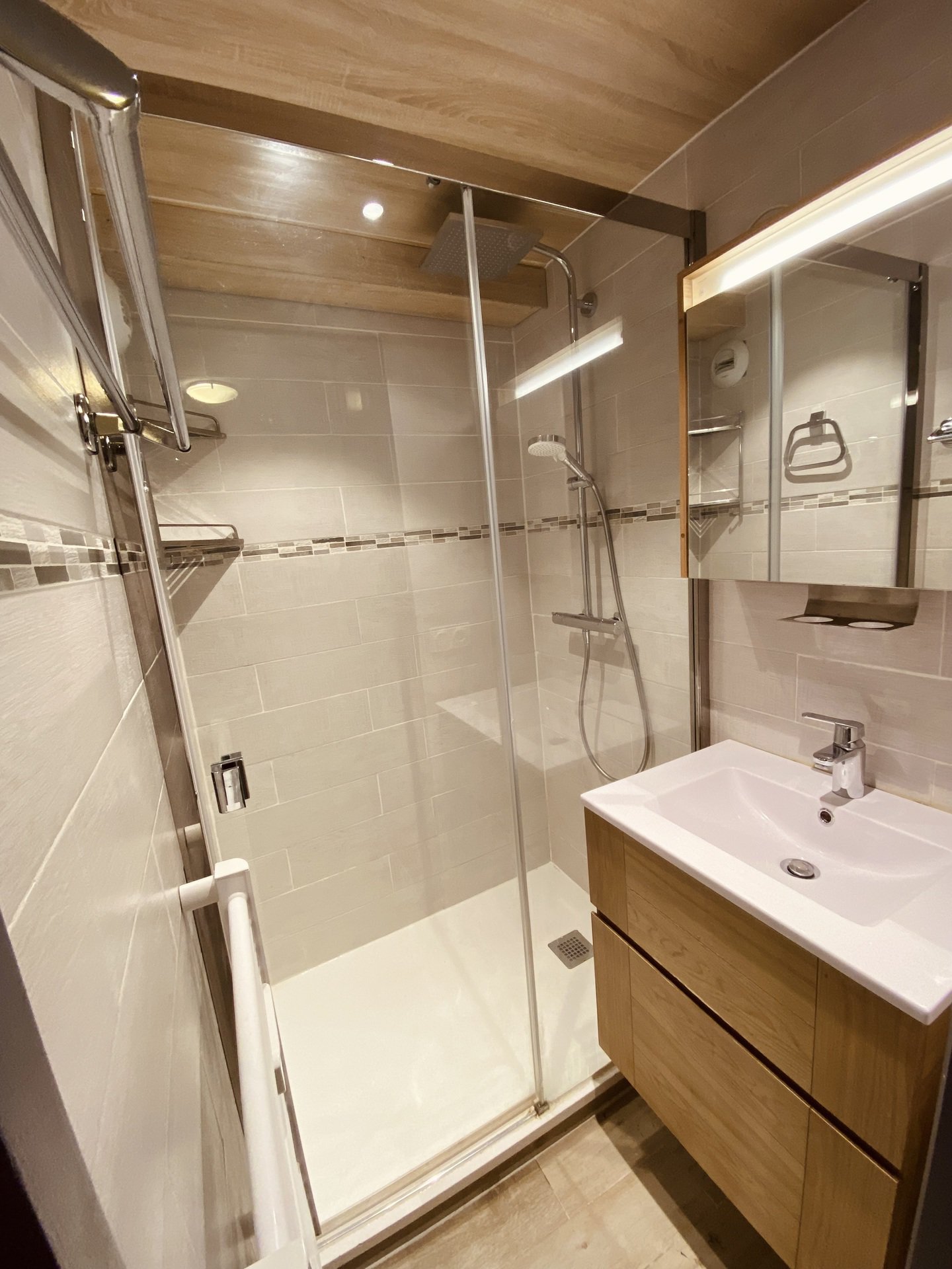 Salle d'eau : lavabo, douche, sèche-cheveux. WC séparés.