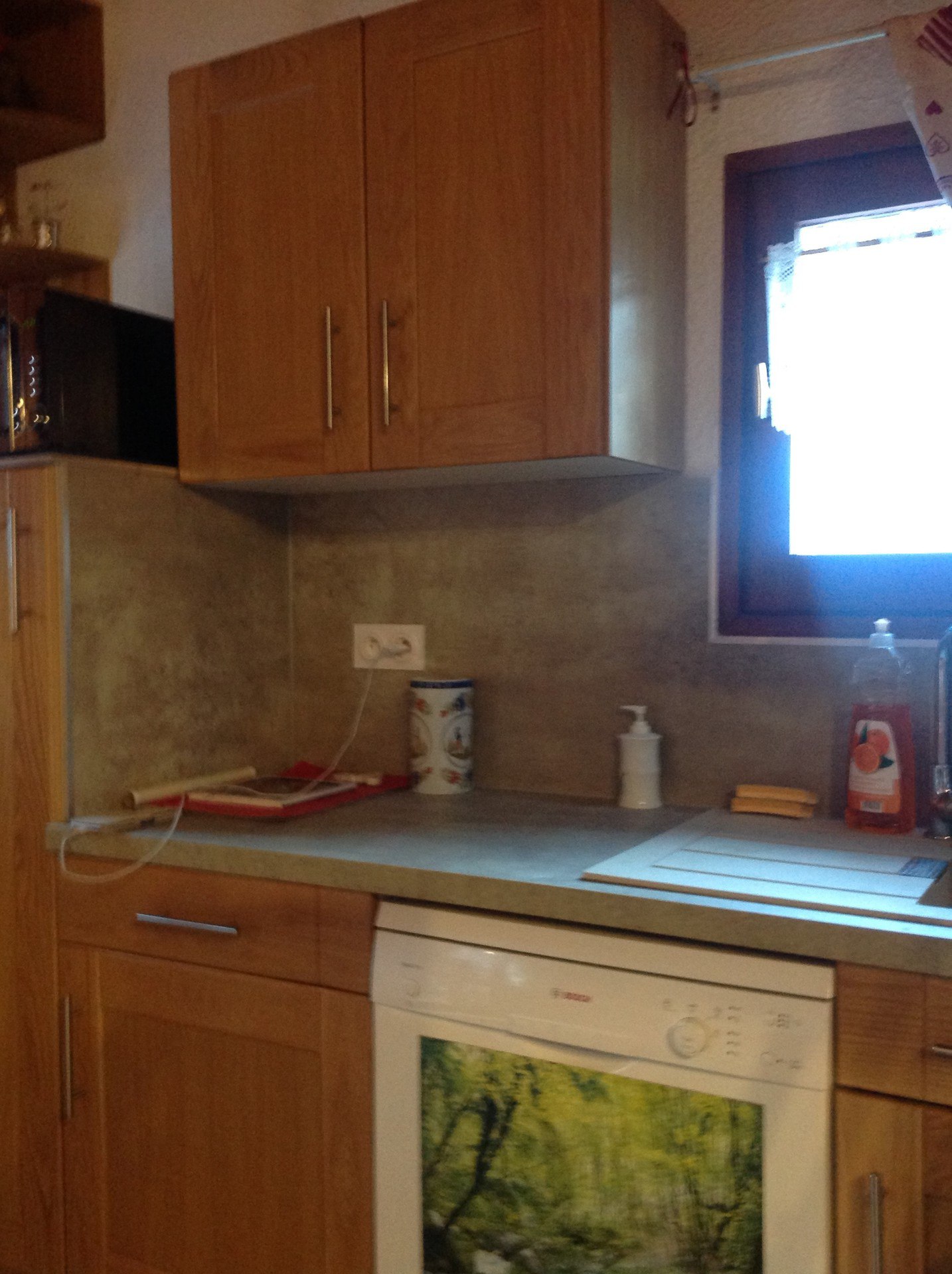 - Coin cuisine : four, micro-ondes/grill, lave-vaisselle, refrigerateur/congelateur, plaque vitroceramique (3 foyers)