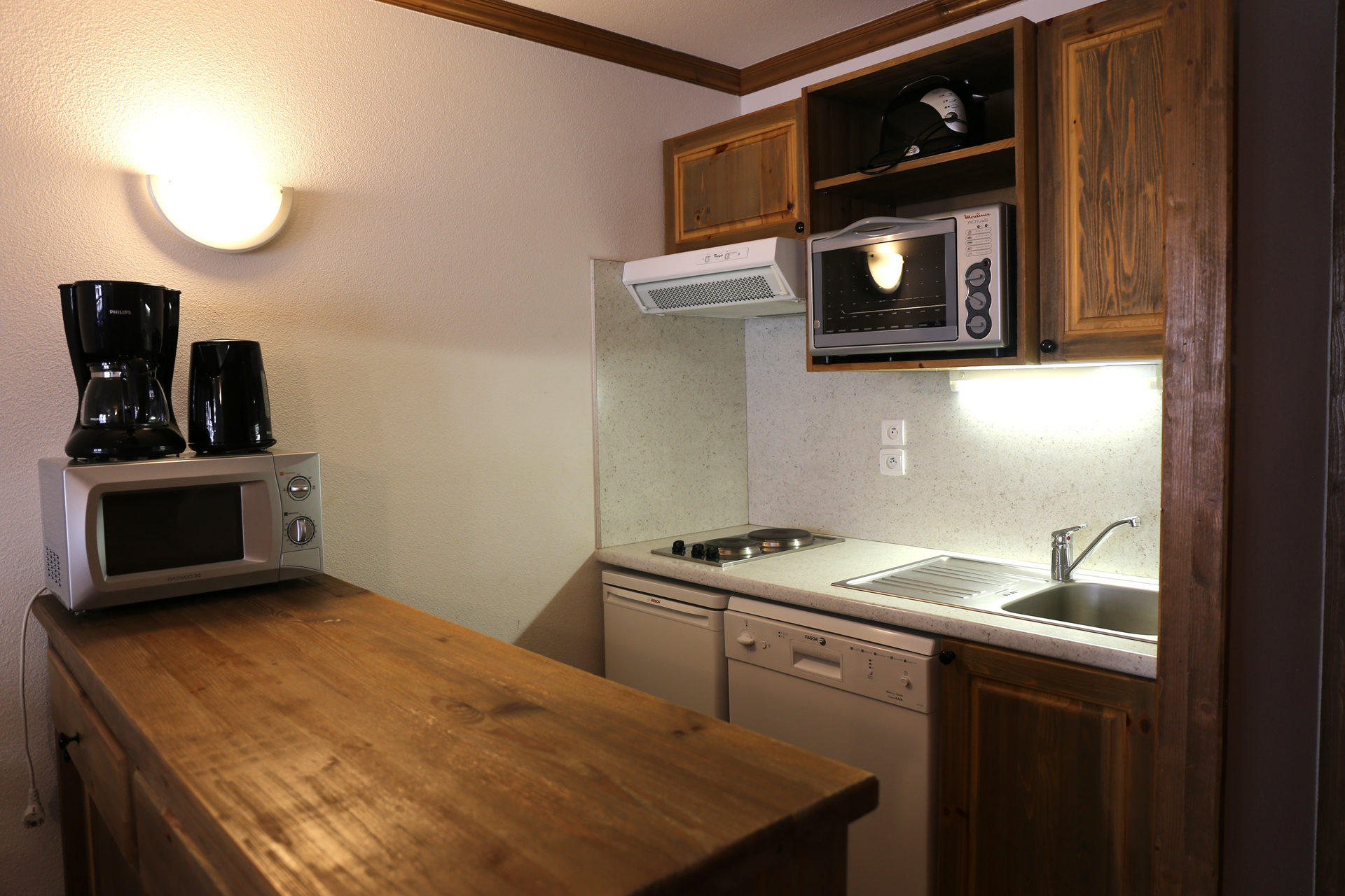 Cuisinette équipée : micro-onde / grill, réfrigérateur, 4 plaques électriques, lave vaisselle, four