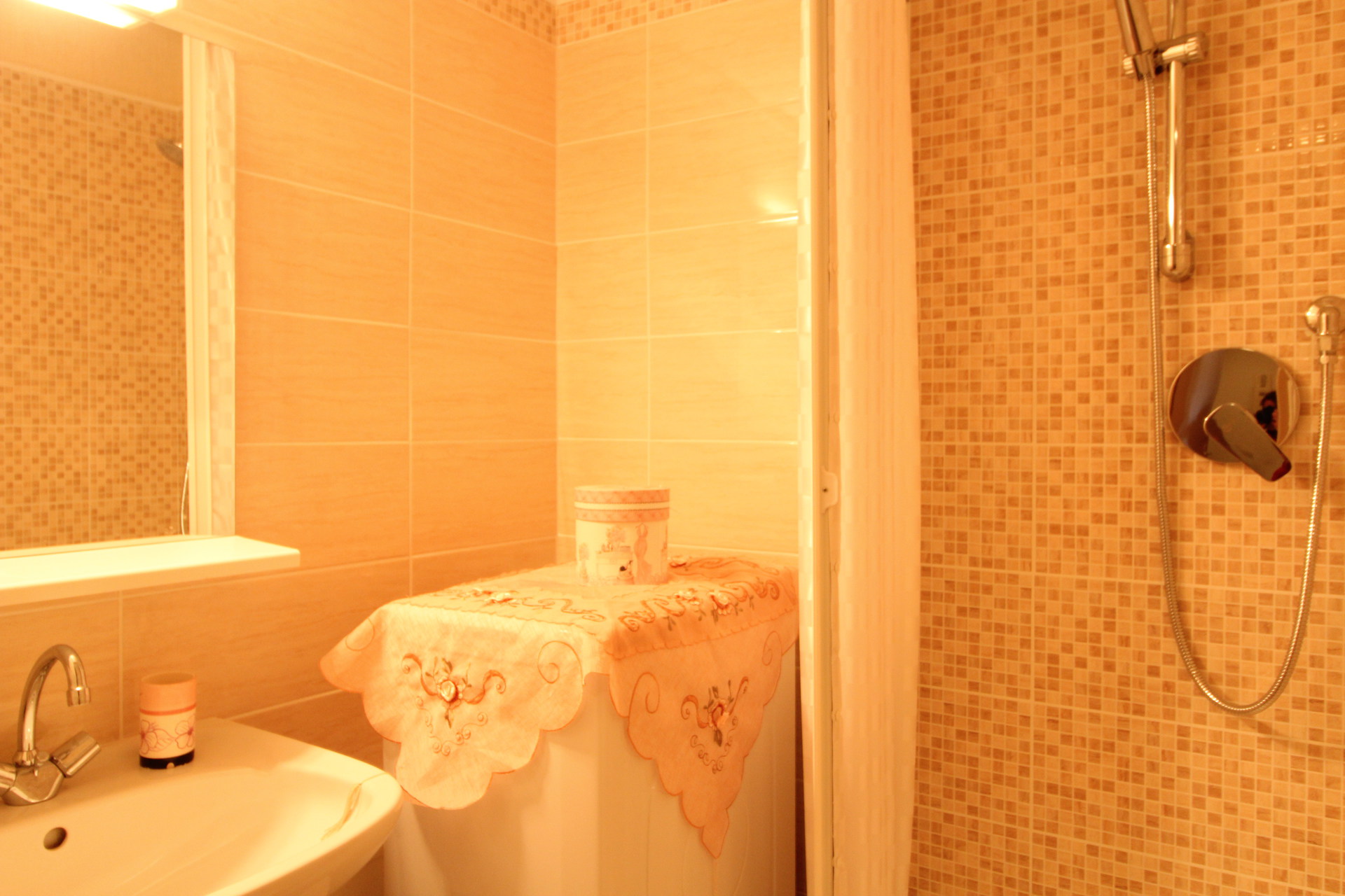 Salle de Bain : douche, lavabo, lave linge. WC séparés