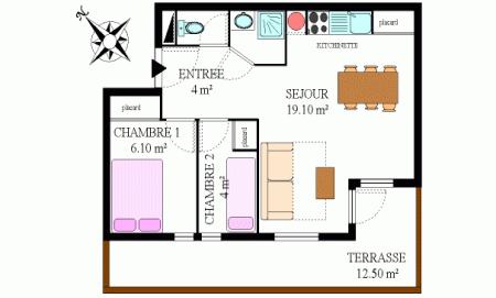 A Aussois, dans la résidence "La Combe II", appartement agréable de 38M² pour 6 personnes.
