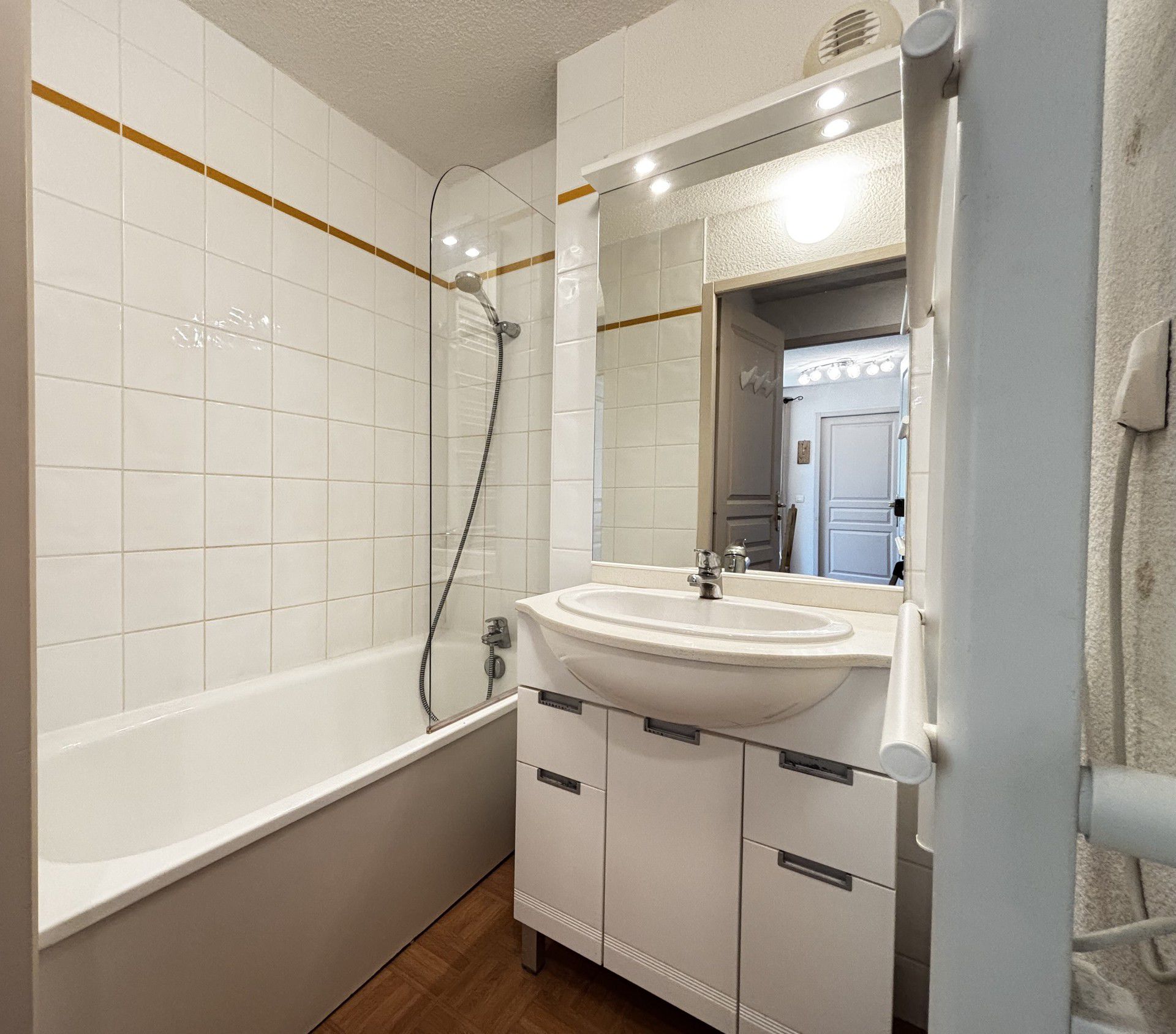 - Salle de bains avec baignoire.