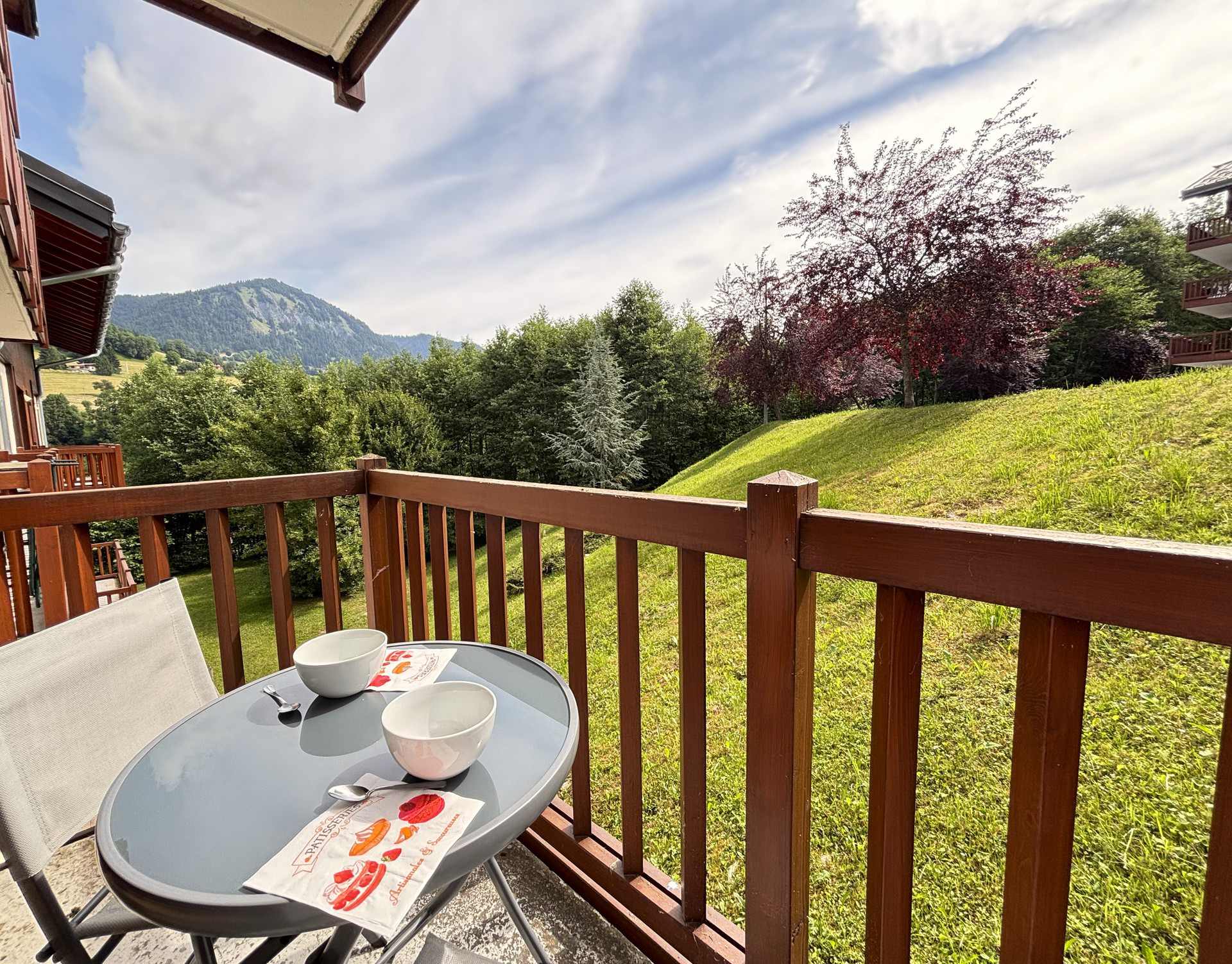 Au pied des pistes de l' Espace Diamant, appartement d'environ 28 m2, ideal pour quatre personnes, etage -1, balcon OUEST.