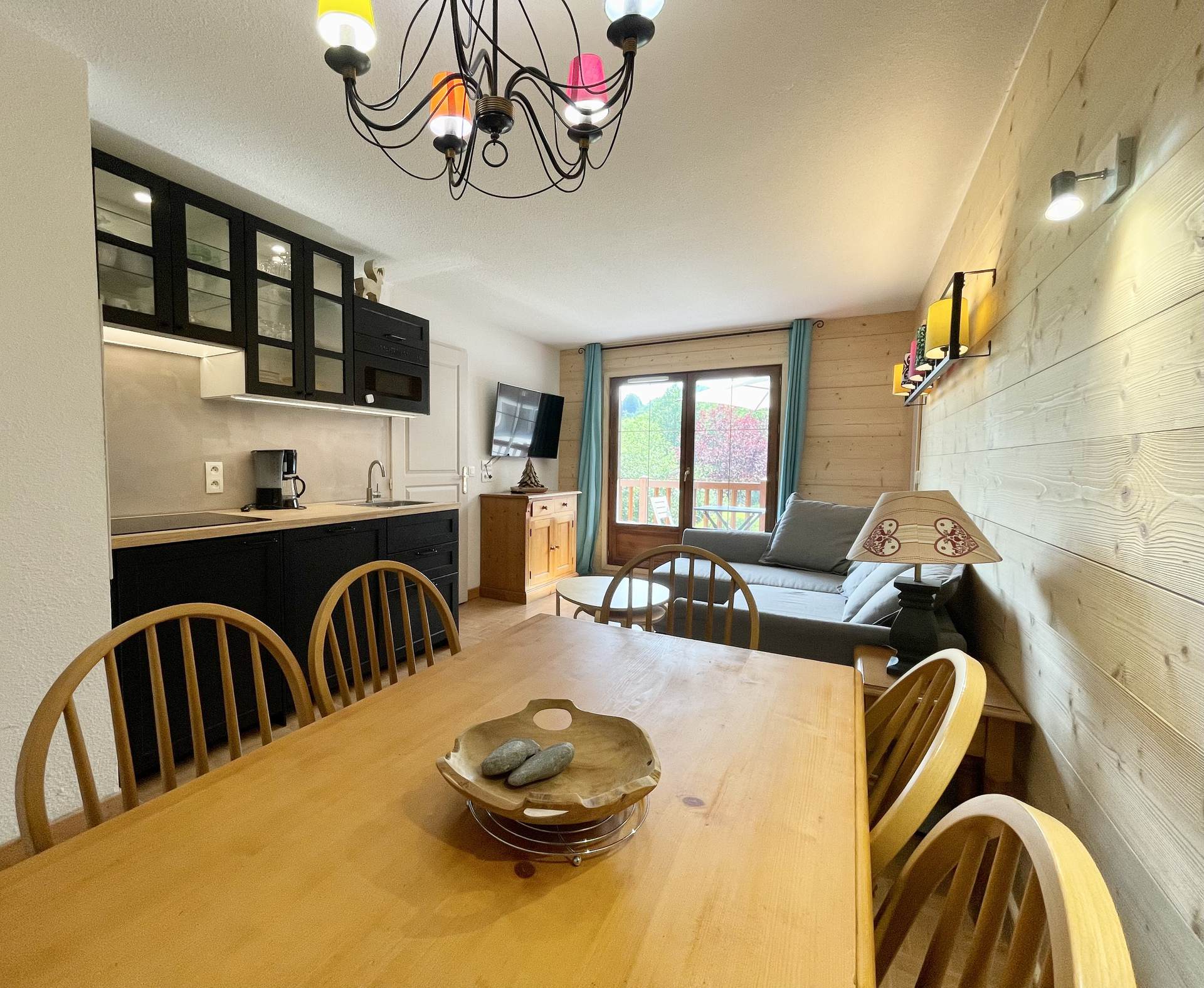 - SEJOUR avec une smart Tv 110cm ouvert sur la terrasse.