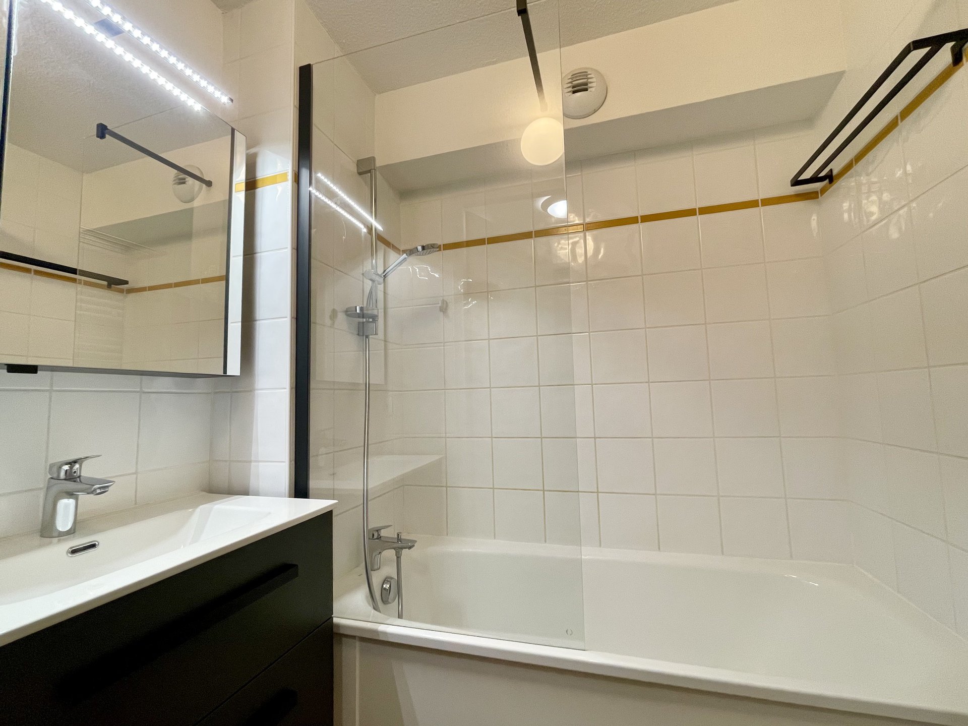 - Une SALLE DE BAINS avec baignoire .