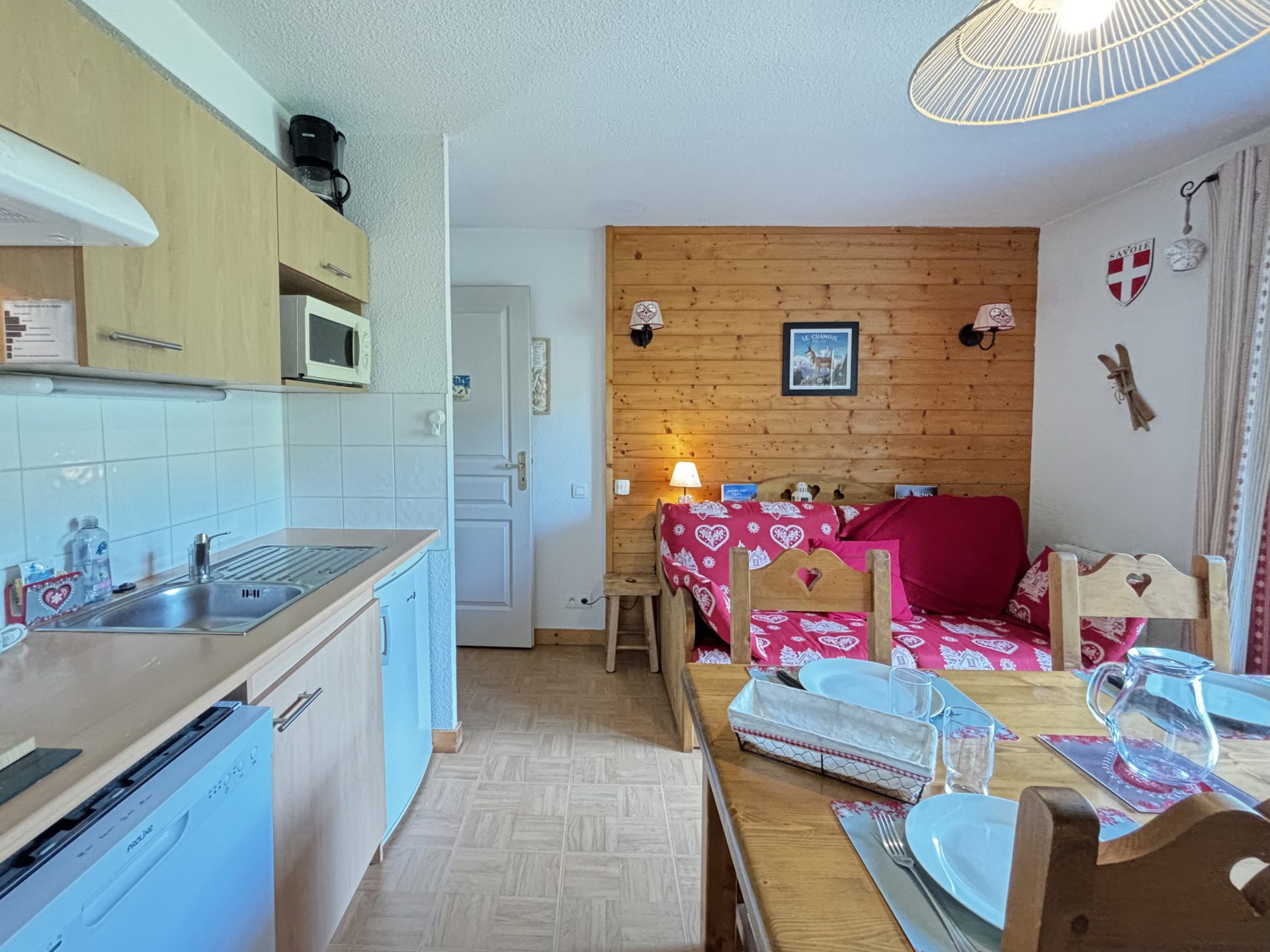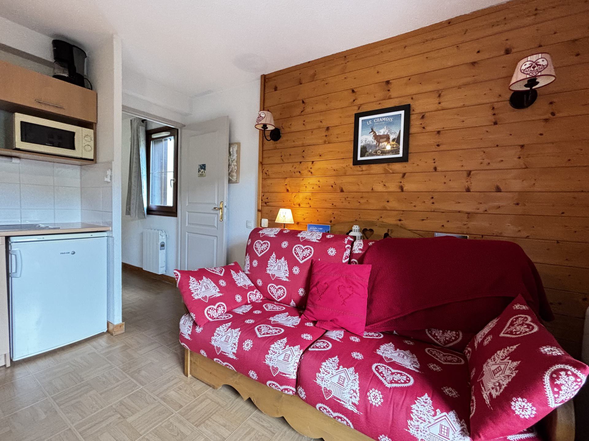 Charmant 2 pieces de 28 m2, ideal pour accueillir jusqu'a 4 personnes, situe au 1er etage d'une residence chaleureuse et au pied des pistes de l'Espace Diamant, a proximite immediate de l'ecole de ski. L'appartement dispose d'un balcon oriente nord-ouest offrant une vue degagee sur les montagnes.