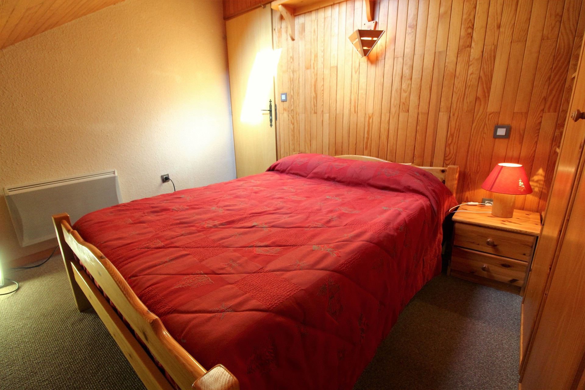 - 1 chambre avec velux en partie en sous pente avec 1 lit de 2 personnes (140x190) et couette