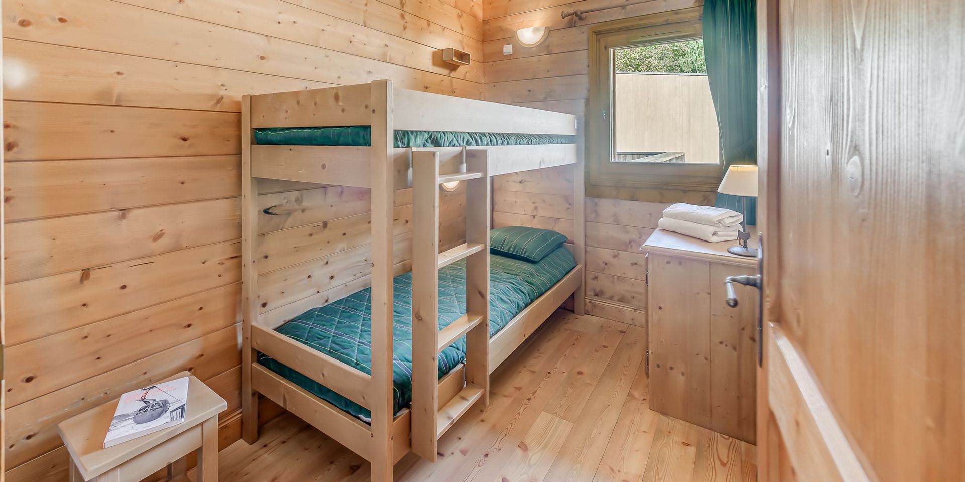 - 1 chambre cabine avec 2 lits superposes avec couettes, commode et fenetre