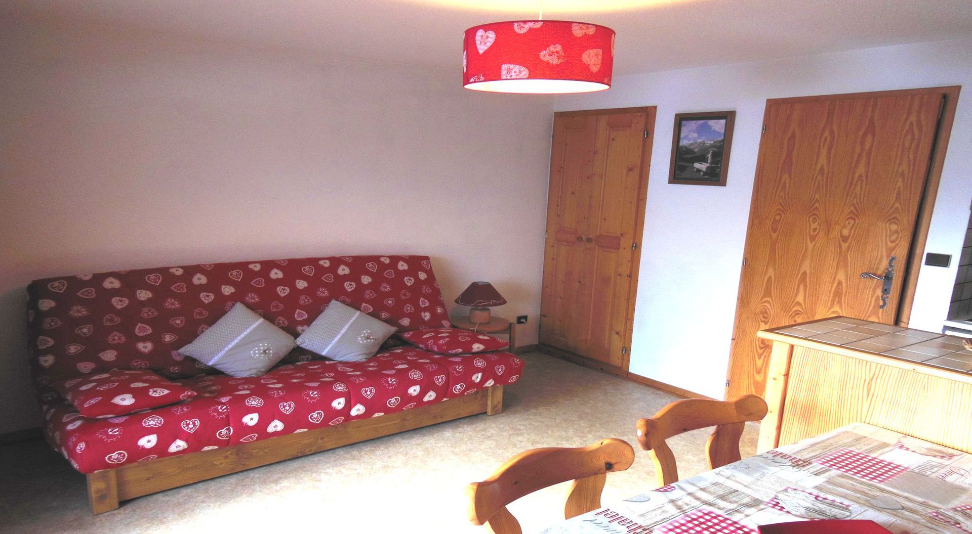 - d'un coin repas et un séjour avec canapé-lit convertible "clic-clac" pour 2 personnes (140x190) et couette