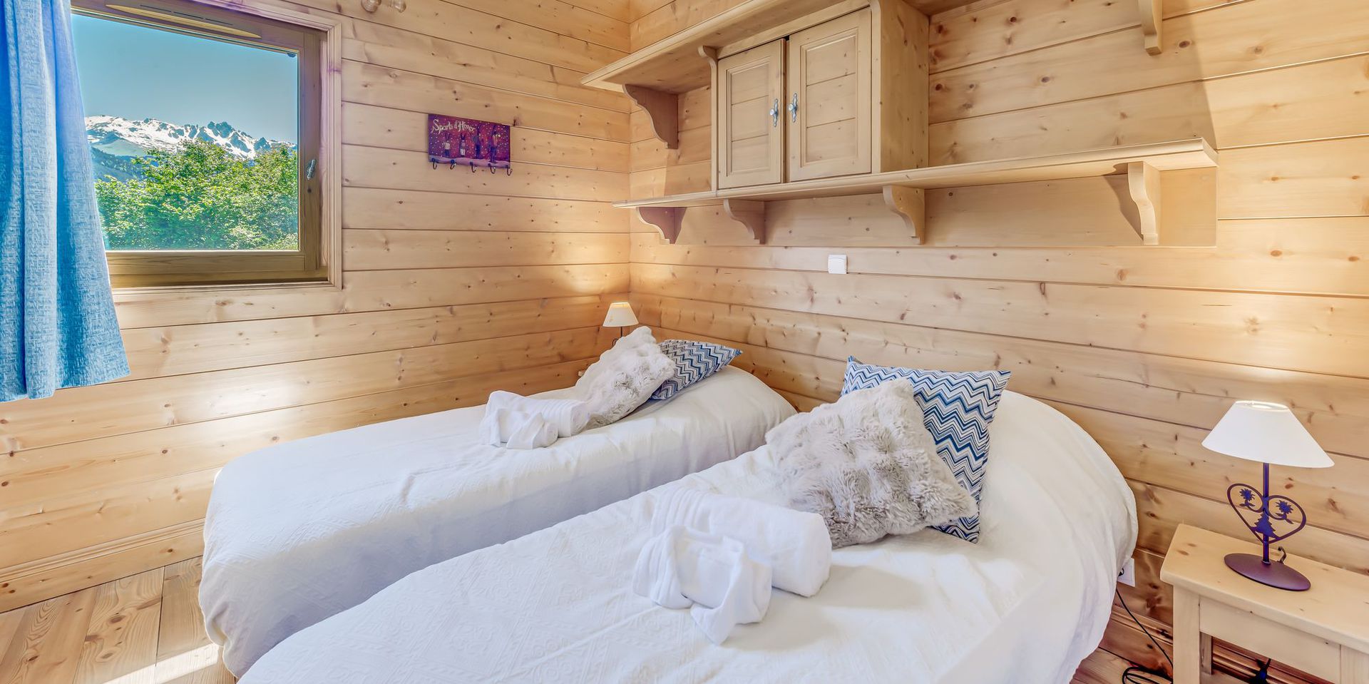 - 1 chambre avec 2 lits simples avec couettes, commode et fenetre orientee OUEST