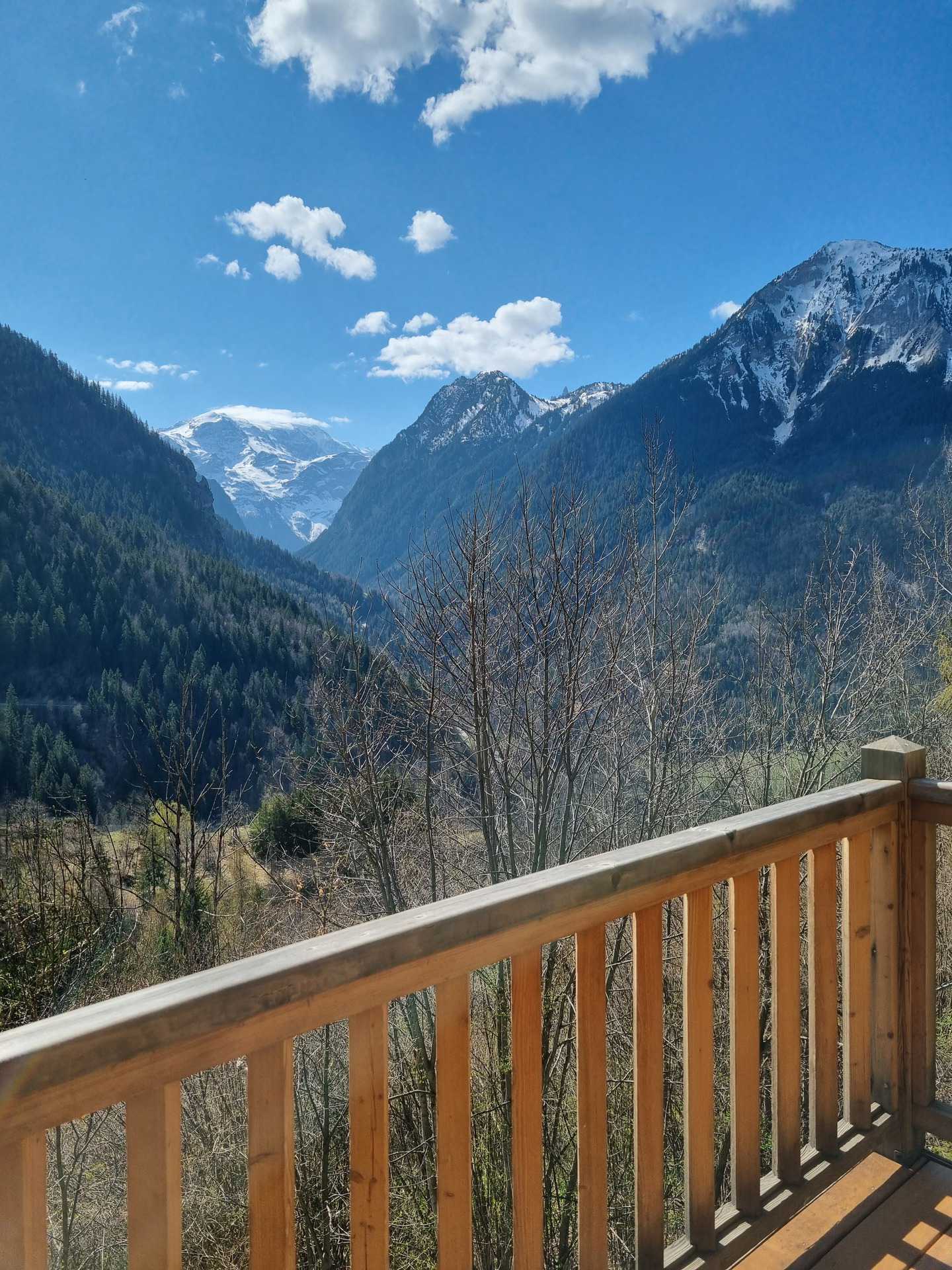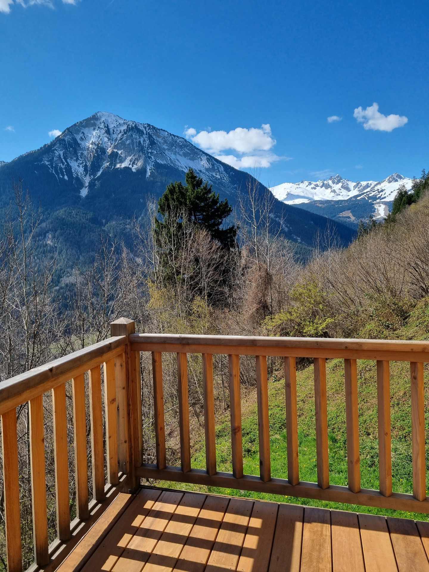 - 1 terrasse SUD - parquet bois - avec vue sur les glaciers de la vanoise et Courchevel, sans vis-a-vis