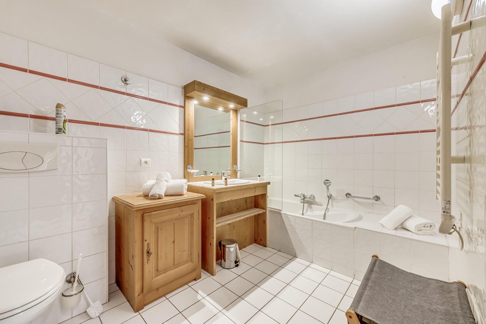 - 1 Salle de bains avec douche et baignoire, meuble vasque et radiateur seche serviettes et WC