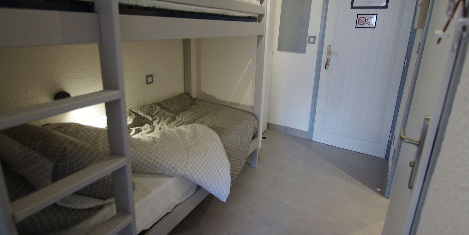 - d'une entrée avec coin montagne avec lits superposés (80x190) et couettes,