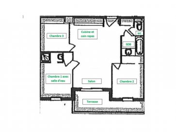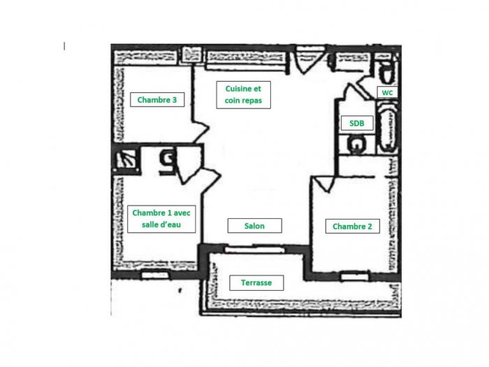 Cet appartement tout confort comprend : entrée, placards, WC séparé, salle de bains, salle de séjour, cuisine équipée, 3 chambres avec rangements dont une avec salle d’eau.