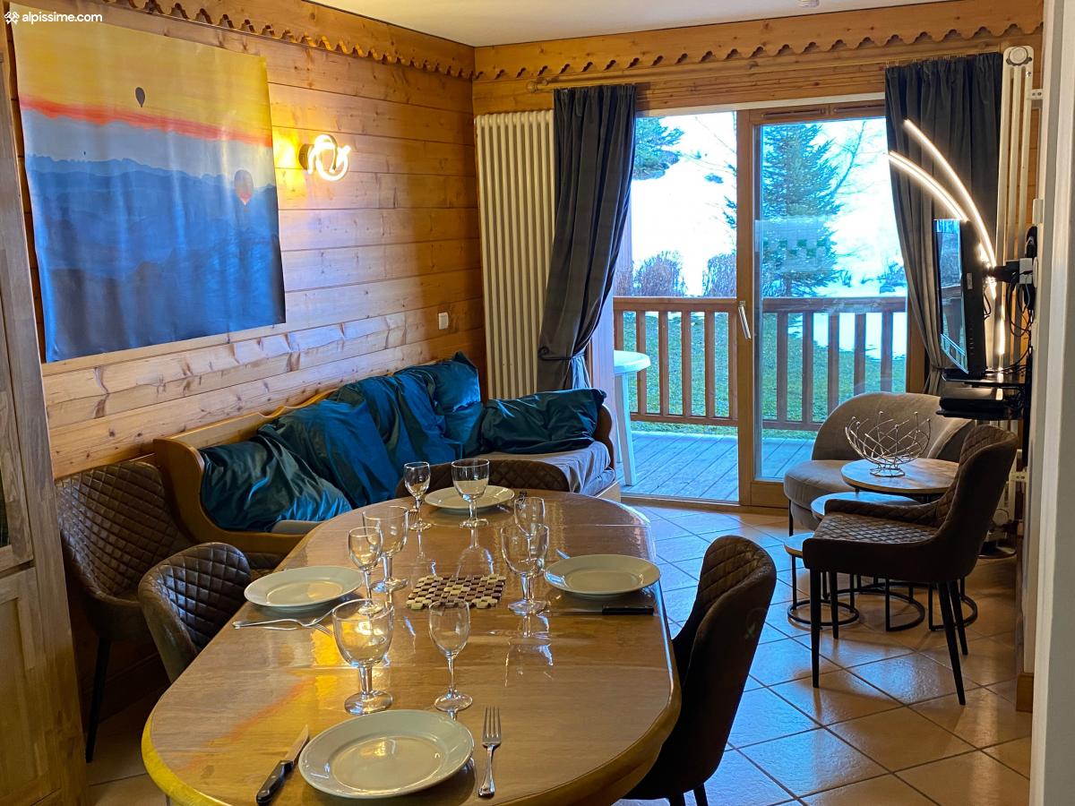Séjournez dans ce charmant appartement rénové au style montagnard et chaleureux, situé dans le village des Alpages du Chantel à Arc 1800.