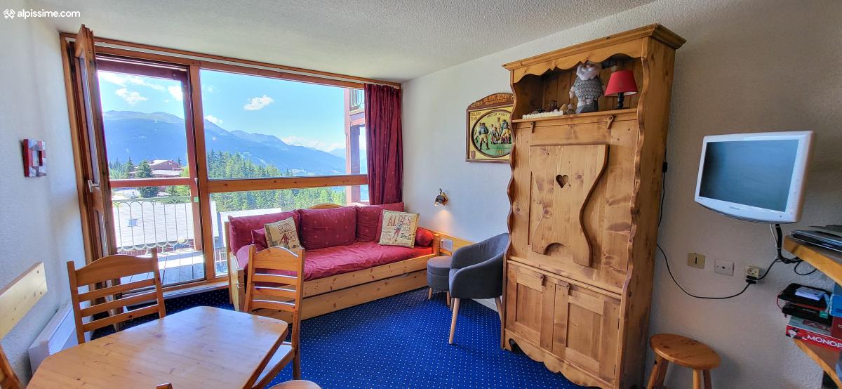 - Une pièce de vie avec cuisine ouverte sur le salon ensoleillé. Le salon proposant 2 lits simples gigognes convertible en un lit 2 personnes.