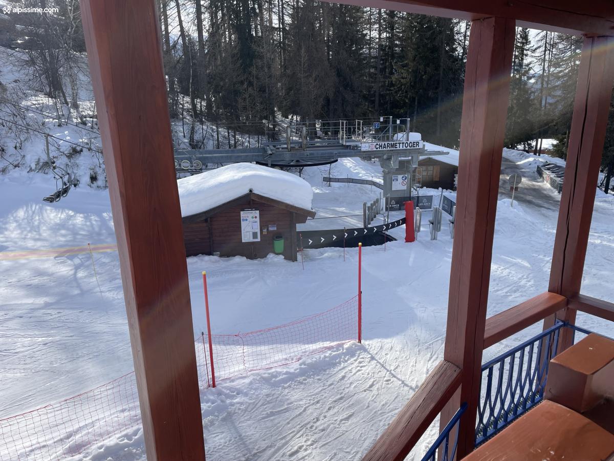 Le départ du télésiège de Charmettoger se trouve juste à l’arrière de l’immeuble, auquel on accède par un couloir intérieur : on ne saurait être plus près des pistes.