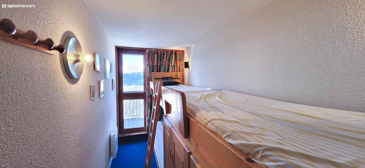 - Une chambre accueillant 3 lits simples (2 lits superposés et un lit superposé à un grand placard)