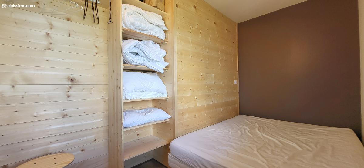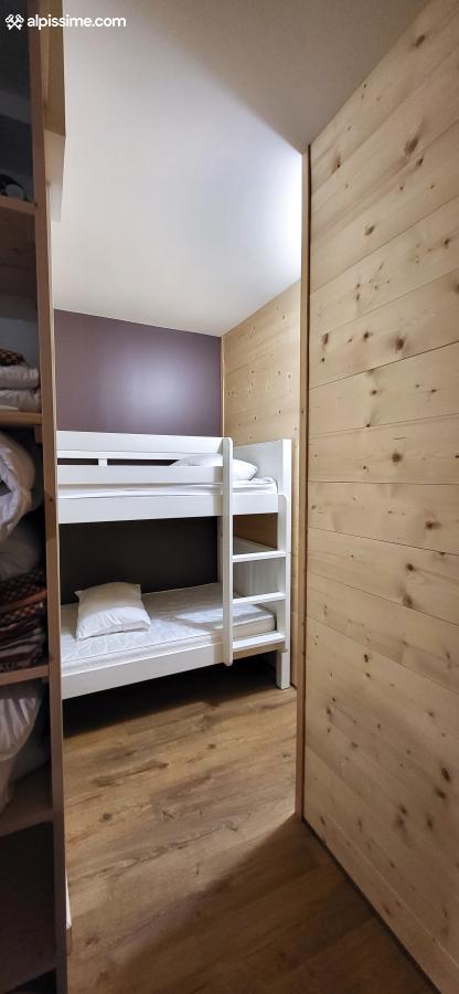 - Une chambre accueillant deux lits superposés et des espaces de rangement
