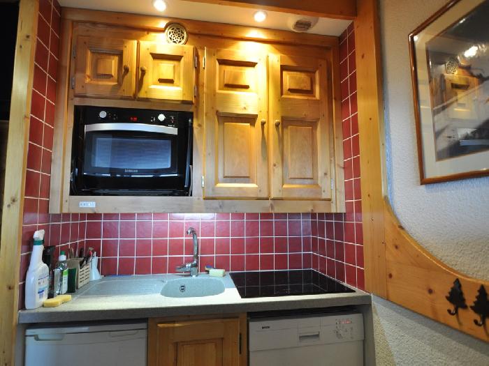 Equipé pour 5 personnes avec un coin montagne ouvert comprenant 1 lit simple et 1 lit tiroir, une chambre vue vallée avec 2 lits simple (pouvant être rapproché pour faire un lit double), un vaste séjour avec 2 lits simples faisant office de canapé, un coin cuisine US, une salle de bains avec baignoire et lave linge, un wc séparé et de nombreux placards et rangements