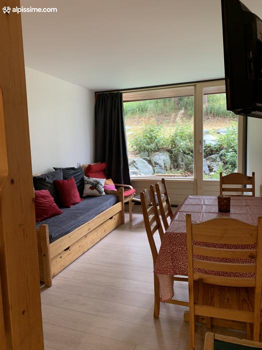 Studio tout confort, récemment rénové, idéalement situé pour les familles. Notre studio dispose d'un coin montagne avec 3 lits superposés séparé par une porte coulissante et de deux lits gigognes dans le salon. L'appartement est en rez-de-chaussée et dispose d'une terrasse plein sud ensoleillée en hiver comme en été. Il est à 50 mètres du jardin d'enfants de L'ESF.