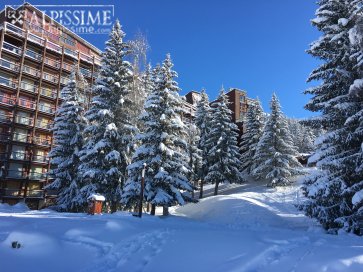 Emplacement rare et au calme pour ce Charmant studio 4 personnes, ambiance chalet de montagne au dernier étage de la résidence Belles Challes. (entre B. Challes et Lauzières).