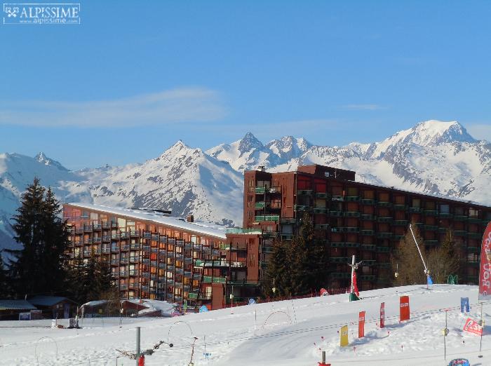 Vue agréable sur les Deux têtes.Du balcon nous apercevons l'Aiguille des Glacier. Studio très calme, Tous commerces, ainsi que la poste, la pharmacie à moins de 100m ; sans oublier un médecin, une garderie, un mini club ESF pour enfants de 3 à 8 ans au pied de l’immeuble.