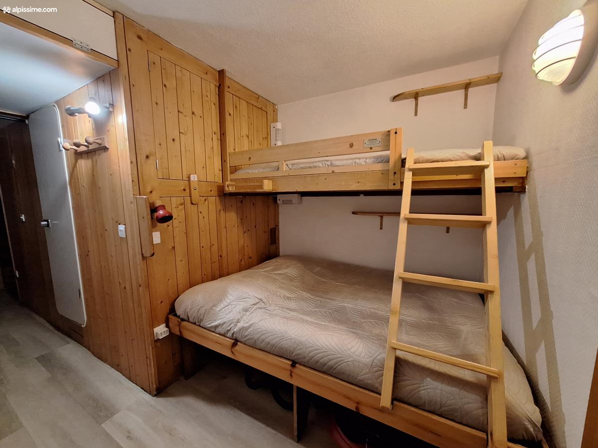 Entrée équipée de 2 lits superposés (le couchage en hauteur n'est pas adapté aux enfants de moins de 6 ans): 1 simple et 1 double