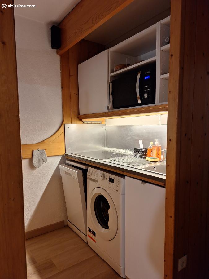 Coin cuisine équipé (plaques, micro-ondes combi grill, lave?vaisselle, lave linge, réfrigérateur/congélateur)