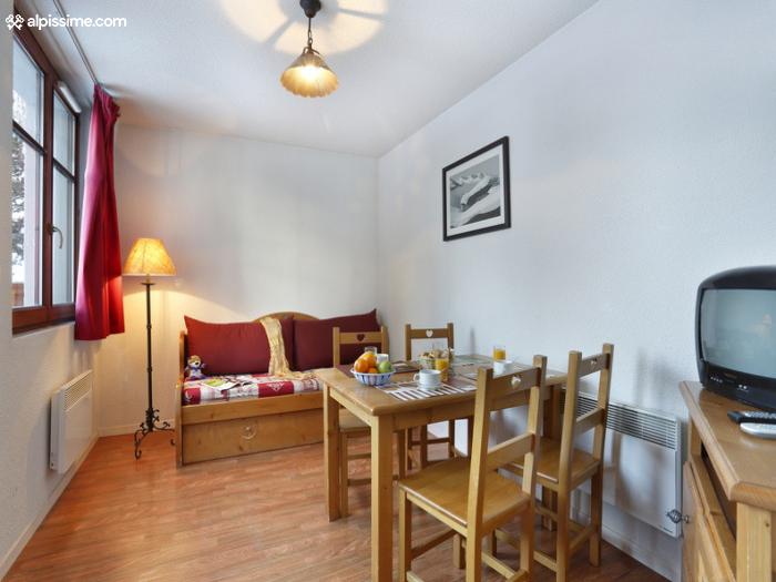 Ce confortable studio pour 4 personnes se compose d'une pièce unique avec lit-gigogne dans le séjour et d'un coin nuit accueillant 2 lits superposés.
