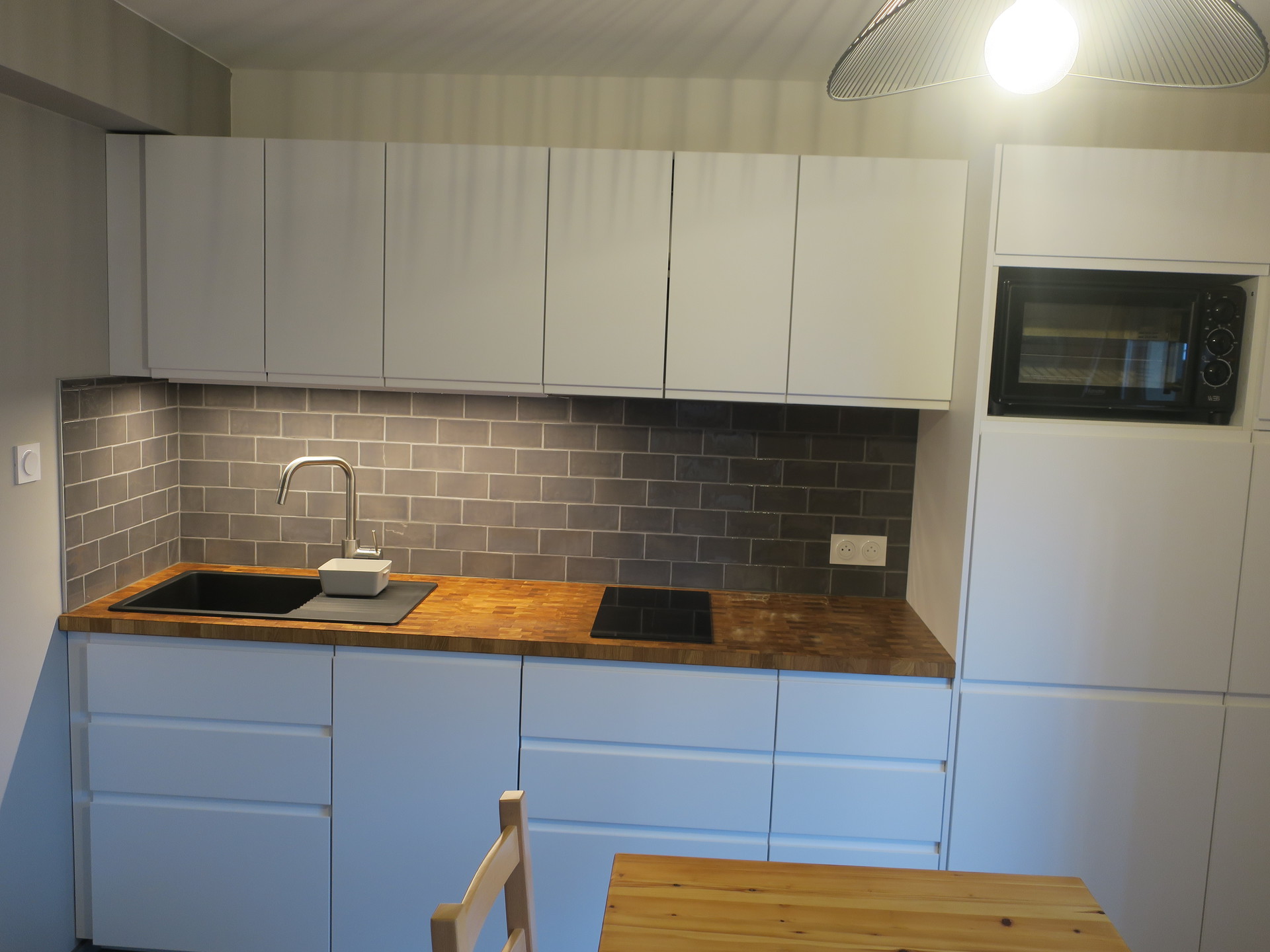 La cuisine est equipee d'un mini four, d'une plaque de cuisson, d'un lave-vaisselle, d'un appareil a raclette.