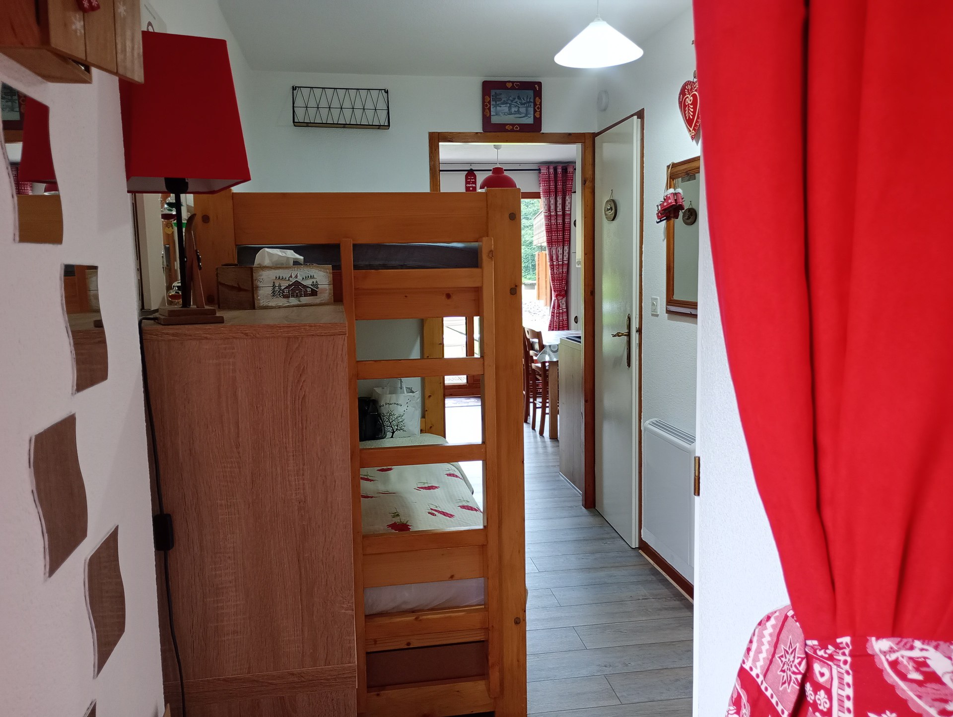 A l'entree, vous trouverez un coin montagne compose de 2 lits superposes, une chambre avec un lit double, une salle de bains, un WC separe, un sejour, une cuisine, et une terrasse expose sud-ouest offrant une magnifique vue sur les montagnes, et permettant de partager de bons repas en famille ou entre amis.