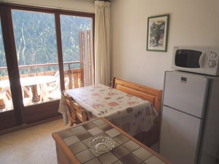 A l'entree, vous avez un coin montagne avec 2 lits superposes, une chambre avec un lit double, une salle de bains avec WC, un sejour, une cuisine, et un balcon expose sud-est de 7m2 avec une vue imprenable sur les montagnes et le village.