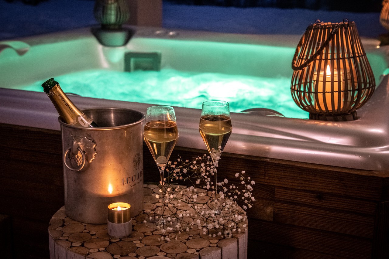 Au rez-de-jardin, deux chambres une avec lit double et salle de bain, l'autre avec deux lits simples, une terrasse equipee d'un spa donnant vue sur la montagne, un petit salon comprenant une TV, des jeux, ainsi qu'une console de jeu Wii, puis un sauna pour vous detendre apres une journee de ski. Un espace buanderie avec lave-linge et seche-linge est egalement amenage.