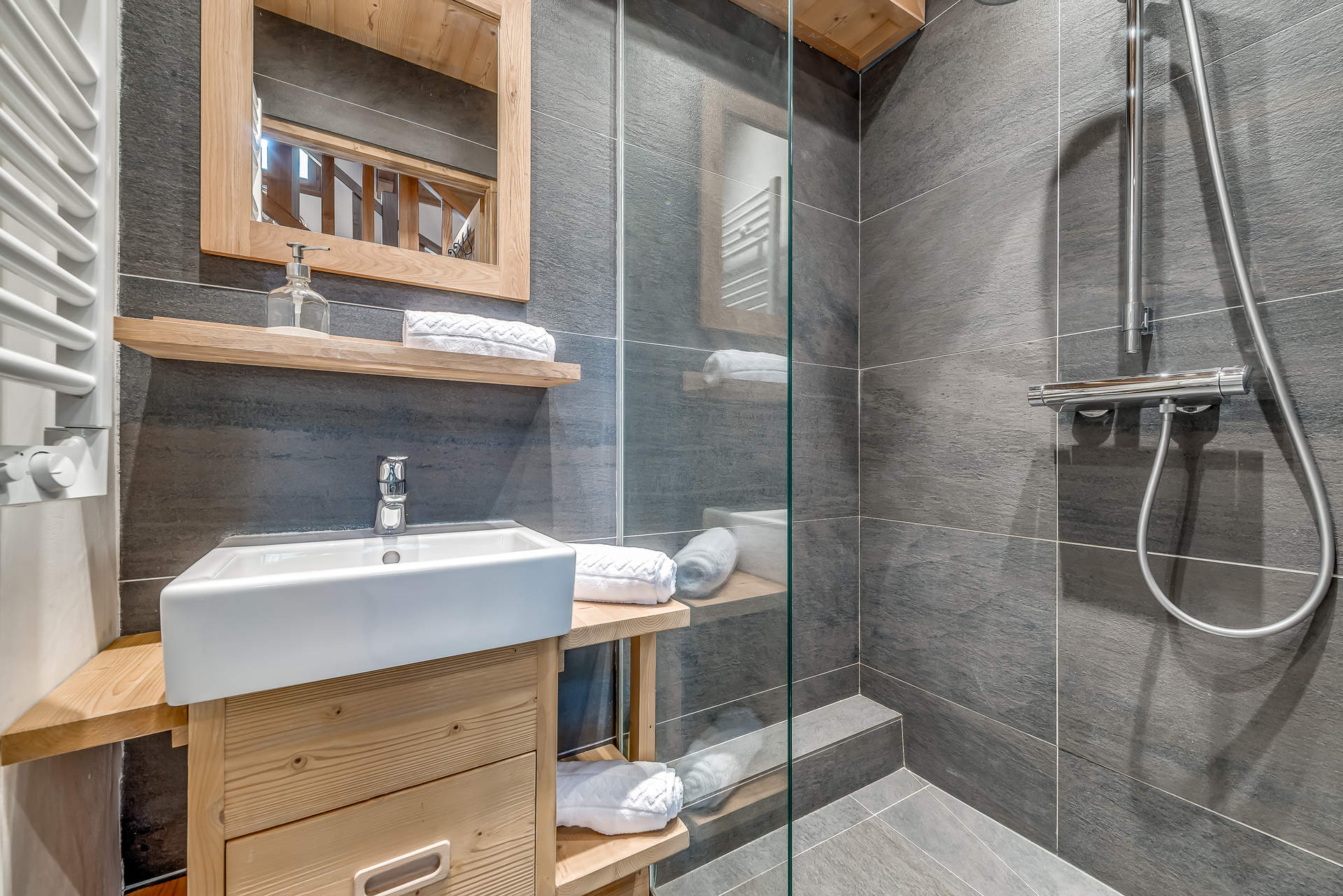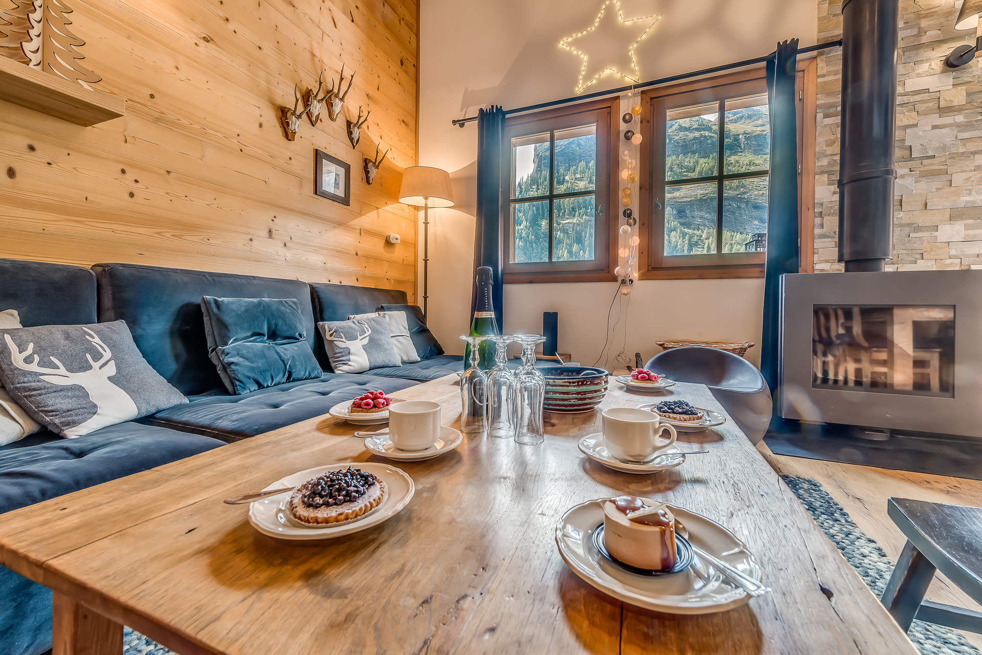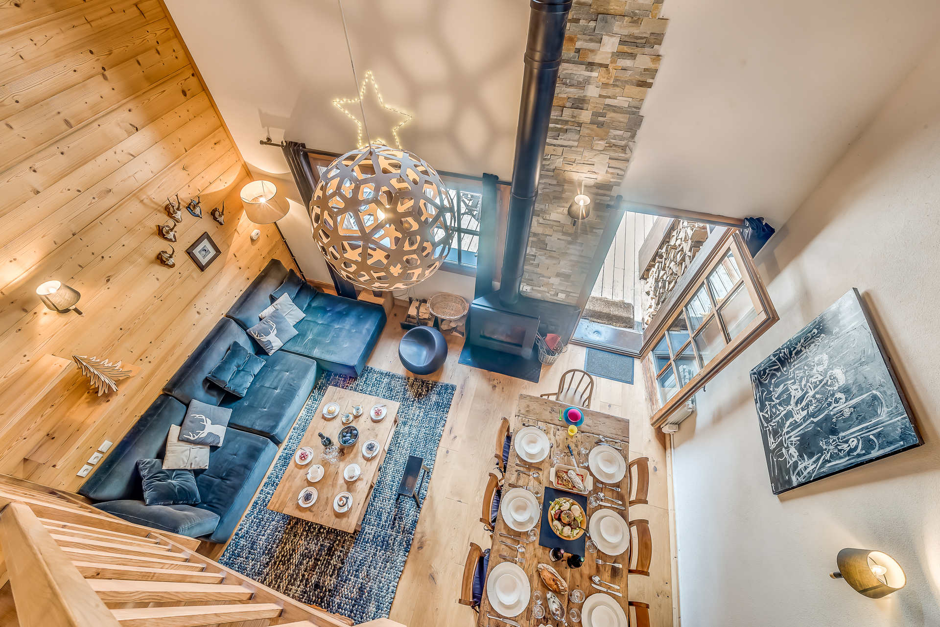 Le Chalet se situe au sommet des Brévières dans le quartier du BELVEDERE, orienté SUD et SUD OUEST, avec balcons et terrasses face aux pistes et au massif du DOME de la SACHE. Le Chalet se répartit sur 2 niveaux d’habitation.
