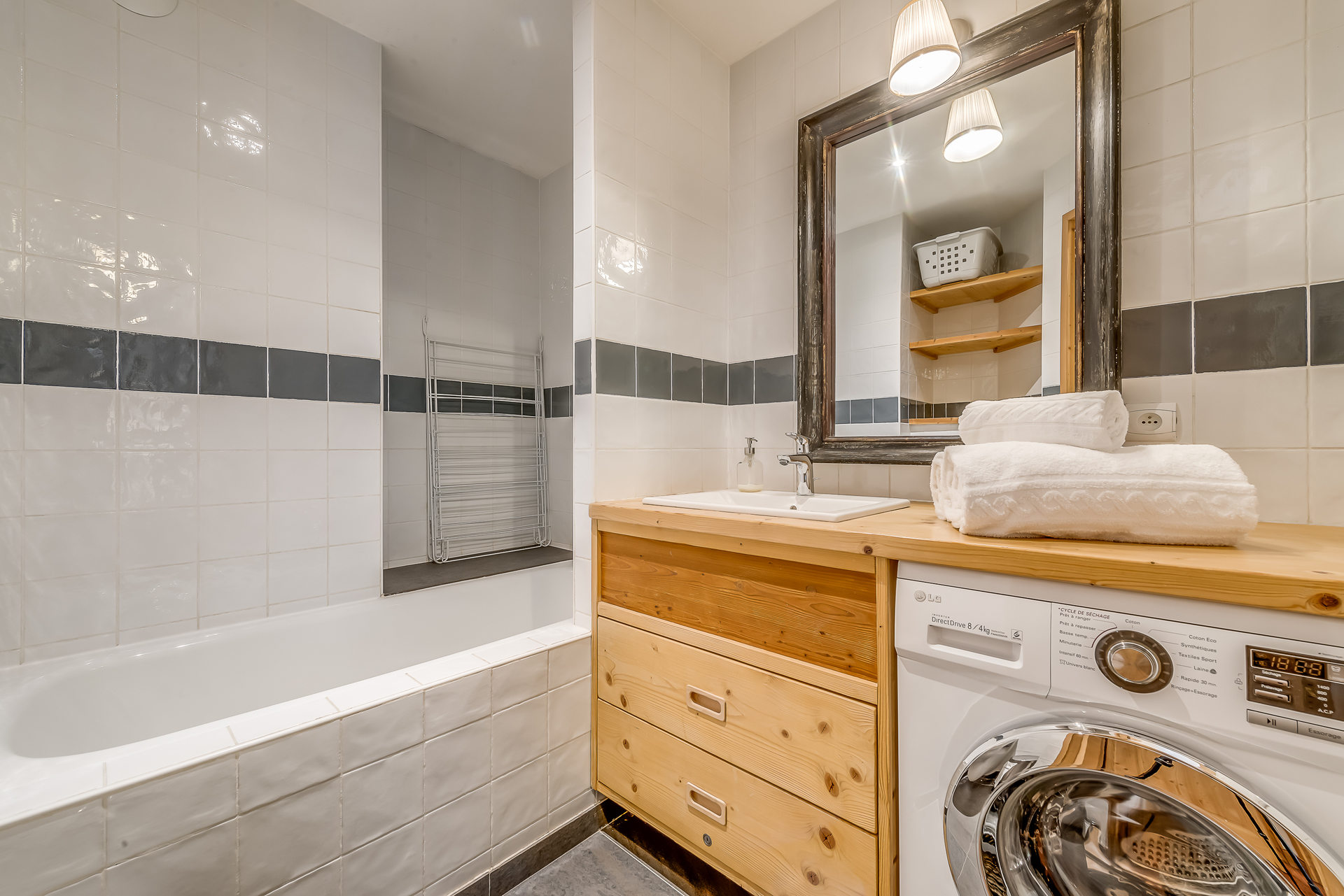 Salle de bain avec baignoire/douche, lavabo, WC, lave/sèche-linge