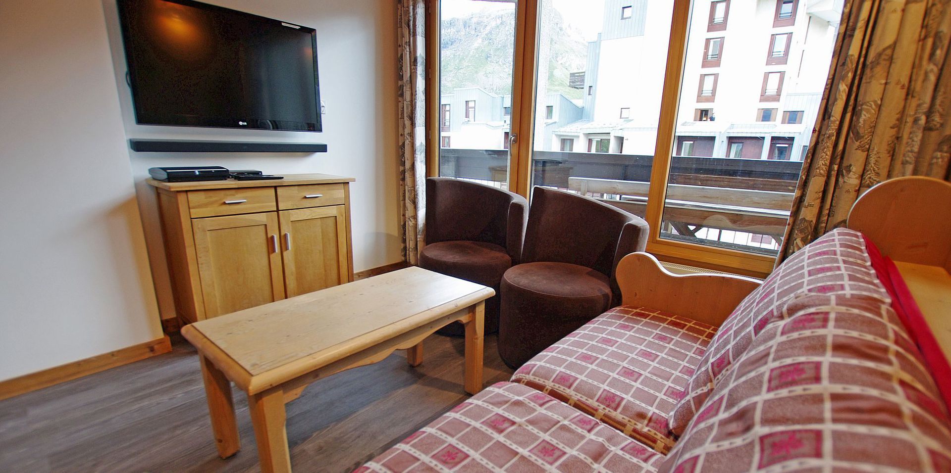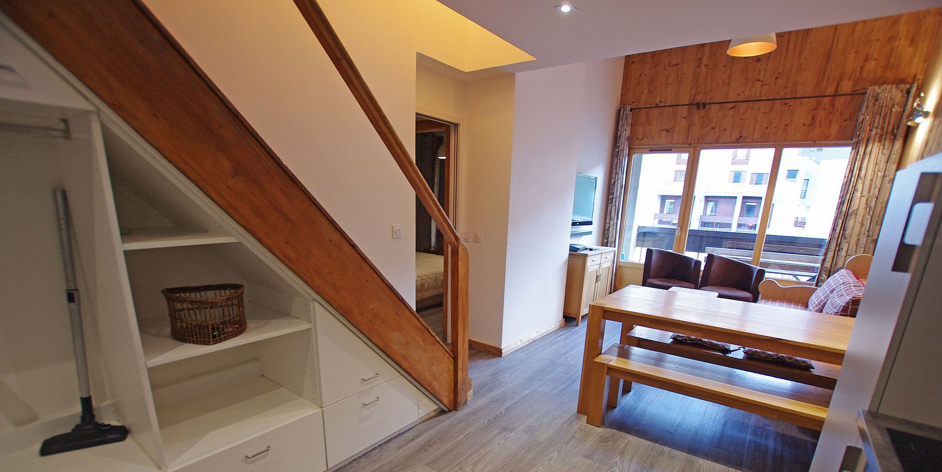 - Sejour coin repas et salon avec canape (non convertible) - lecteur DVD, acces au balcon expose sud